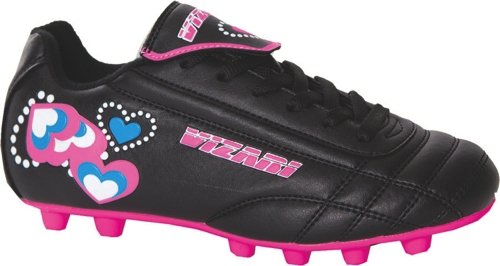 Vizari Youth Retro Hearts FG Soccer Cleats... Added Fun On The Field! Vizari Youth Retro Hearts FG Soccer Cleats feature: Durable synthetic leather upper for excellent feel Embossed retro hearts design adds style Padded heel and collar lining enhances comfort Central lacing system Fold over tongue with embossed hearts and Vizari logo Two-color molded rubber outsole provides great traction For use on firm natural surfaces Colors: Black/Pink Sizes: 1 - 51/2 (includes whole & 1/2 sizes) 6, 8, 9, 10 - 131/2 (includes whole & 1/2 sizes) Vizari... The Best In Performance, Quality, Styling & Affordability!