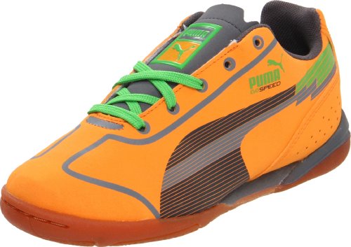 Puma Youth evoSpeed Star Shoes The Definition of Puma's One Word Philosophy: Speed. evoSpeed was created as part of a cross category concept with 3 things in mind: light, flex and fit. Shaped to the foot, the evoAptoLast design feels like a second skin, producing feather light moves. Puma Youth evoSpeed Star Shoes feature: Upper: Lightweight, abrasion-resistant monolayer Micro Tec Suede material for soft feel Midsole: Anatomically engineered PUMA evoAptoLast provides industry-leading fit and flexibility EVA midsole provides cushioning Outsole: Non-marking rubber Low-profile design offers good grip, stability and cushioning Suitable for use on and off the field Puma...Love Equals Soccer!
